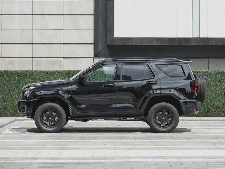 再来看车身侧面部分,车身尺寸定格为 4964/1970/1905mm,轴距保持 2850mm,相比老款宽度增加 10mm、高度增加 5mm,横向视觉更显扎实。标志性的粗犷轮眉镶嵌铆钉元素,搭配全新黑化处理的 18 英寸轮圈与锦湖 CRUGEN HP71 系列轮胎(265/65 R18),运动气息与通过性双重在线。细节上,Hi4-T 版本配备电动侧踏板,上下车更便捷;Hi4-Z 版本则采用固定侧踏板,强化越野稳定性,两种设计精准匹配不同使用场景。